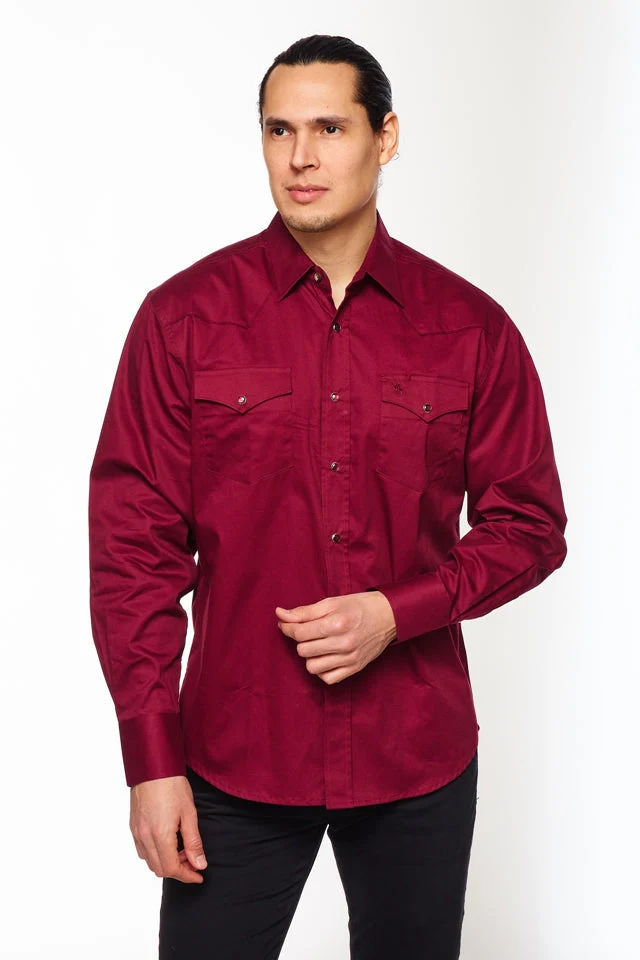 Men's Western Solid Twill Shirt-AC108L-BURGUNDY
