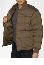 Men's Canvas Quilted Puffer Jacket-ACJ29-Mushroom