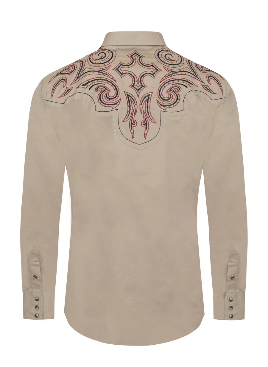Men's Western Cowboy Embroidery Shirt-PS500D-1014