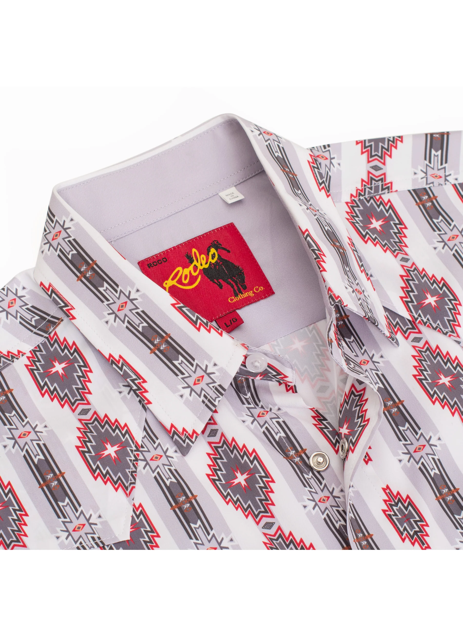 Description: Men's western short-sleeve, 100% modal Aztec printed shirts with snap buttons.
