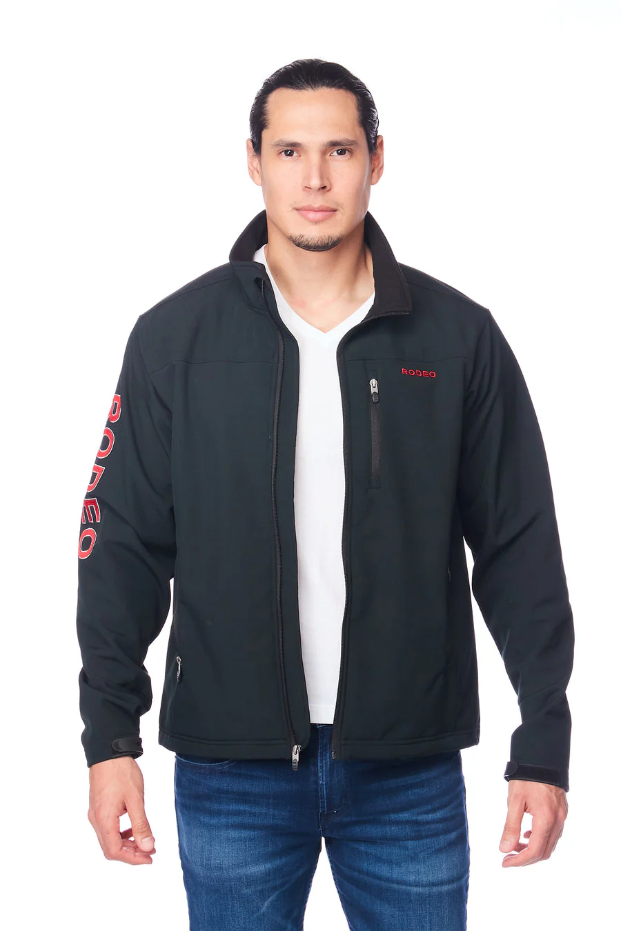 - "Rodeo" logo embroidery on the left chest and down the right sleeve