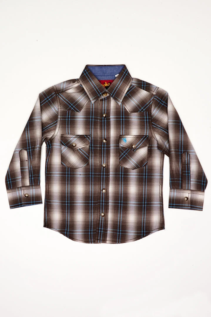 Boy's Western Pearl Snap Button Plaid Shirt -PS400K-461