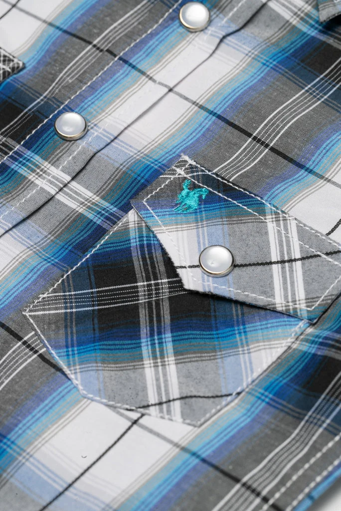 Boy's Western Pearl Snap Button Plaid Shirt -PS400K-471